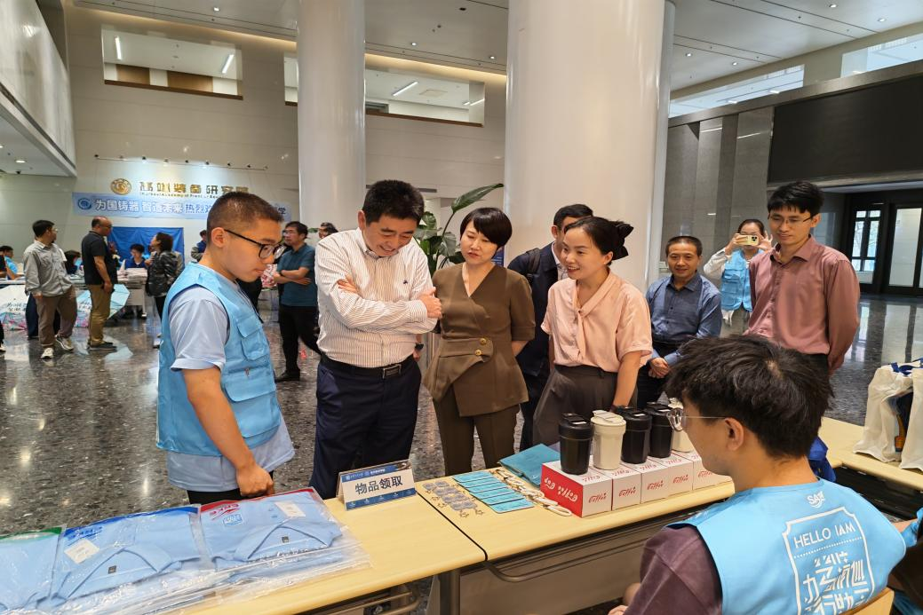 党委常委、副校长洪军,党委副书记王欢一行赴创新港检查研究生迎新工作,亲切慰问一线工作人员和志愿者,在学院报到迎新点前,志愿者热情介绍学院自主设计的新生礼包的种类和创意,得到学校领导的充分肯定。