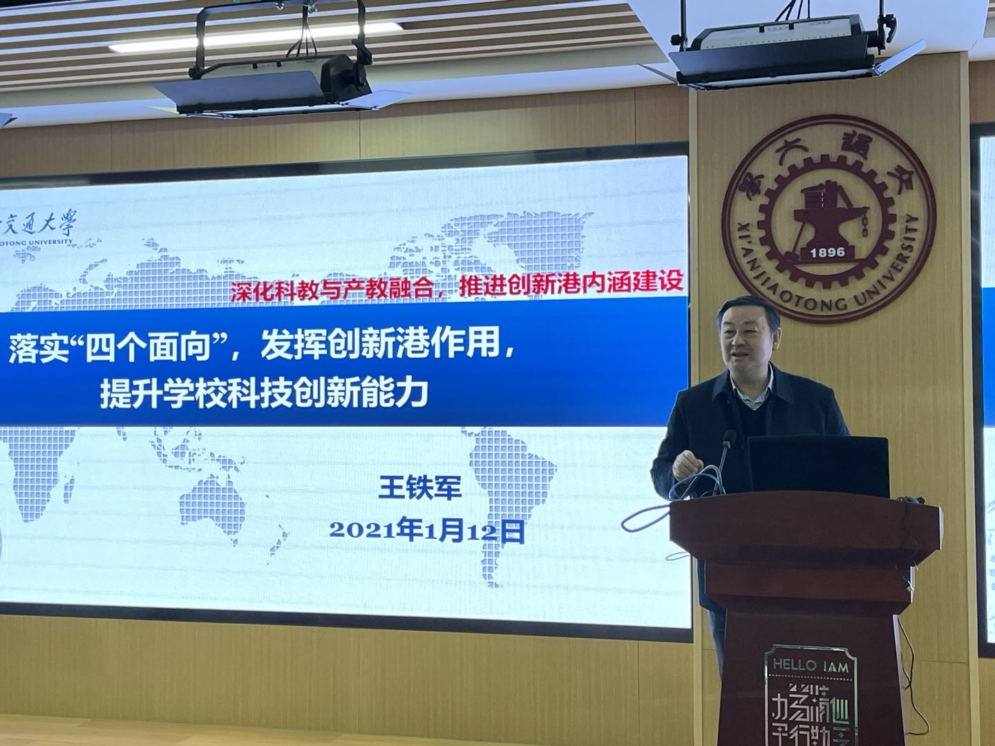 1月12日下午,校党委常委、副校长王铁军给航天学院2019级和2020级的学生党员带来了一堂意义深刻、格局远大的党课。党课题目是:落实 “四个面向”,发挥创新港作用,提升学校科技创新能力。航天学院党委书记李小跃主持会议。