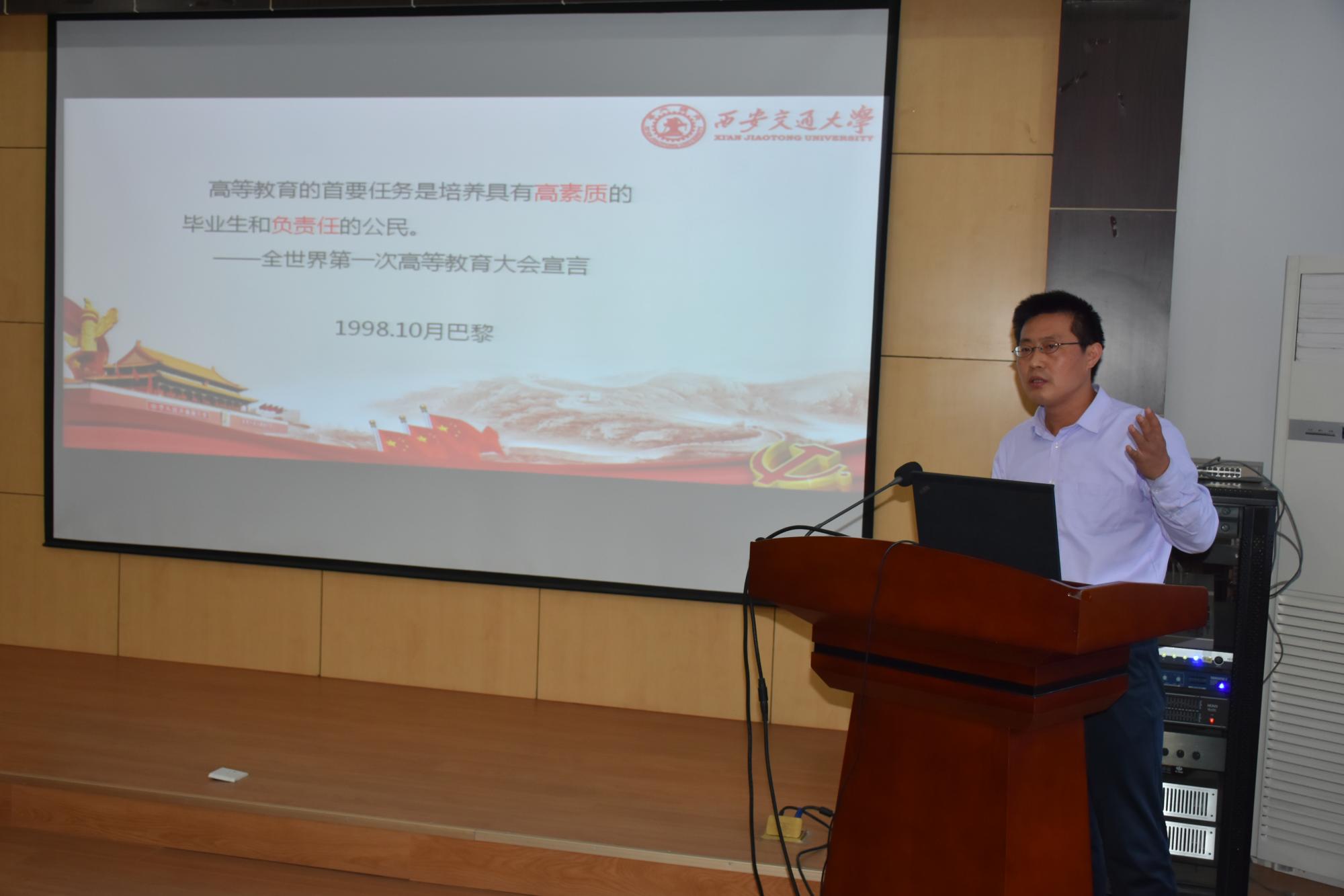 陈书记从“新时代高等学校的任务”、“习近平总书记在北大的讲话精神”、“学好新思想,争做好青年”三个方面娓娓道来,介绍了“高等学校的五大职能”、“大学文化的特征”,深入讲解了全国高校思政工作会议、全国教育大会等会议精神,分析了海内外时政背景,要求同学们认真思考来学校做什么,将来毕业后要做什么样的人。