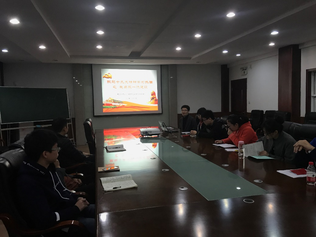 会议伊始,党支部书记王晓康简单介绍关于“双一流”的主要背景。组织委员林睿捷同学阐述了十九大与“双一流”建设之间的联系,并提到,在党的十九大工作报告中,习近平总书记指出,优先发展教育事业。建设教育强国是中华民族伟大复兴的基础工程,必须把教育事业放在优先位置,加快教育现代化,办好人民满意的教育。加快一流大学和一流学科建设,实现高等教育内涵式发展。作为交大人,我们要认真学习宣传好十九大报告,贯彻落实好十九大精神,进一步推进我校的改革发展、稳定、“双一流”建设和立德树人工作。