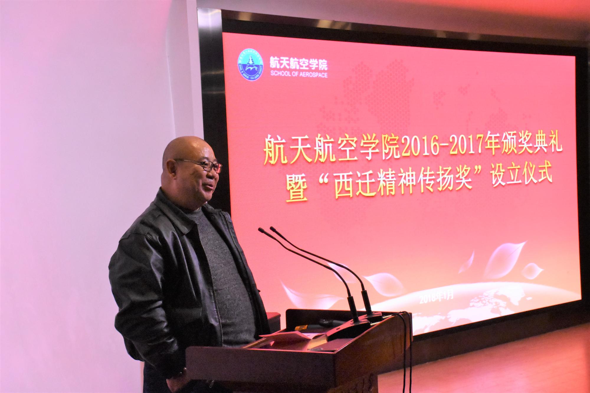 航天学院申胜平院长在致词中回顾了学院过去一年在人才培养、科学研究、学科建设等方面取得的成果,他表示力学学科在办学60周年之际入选国家“一流学科建设名单”,在2017年的软科排名中位列第一,教育部学科评估中并列第3名,这是全院师生凝心聚气、践行“西迁精神”的最好体现,“西迁精神”是奉献报国的使命文化,是秉承国家利益至上,坚持服务国家、建设国家的责任担当,希望同学们继续传承和发扬西迁精神,到祖国最需要的地方奉献青春与智慧。