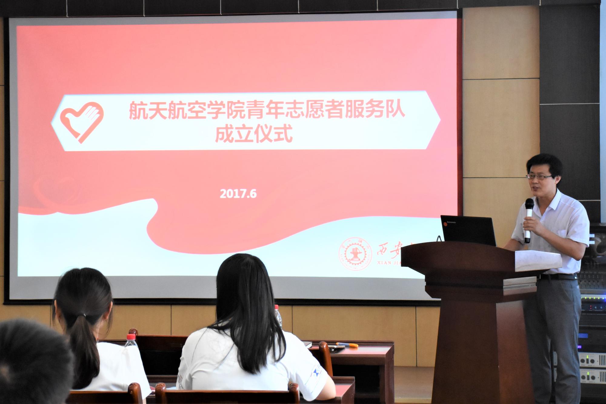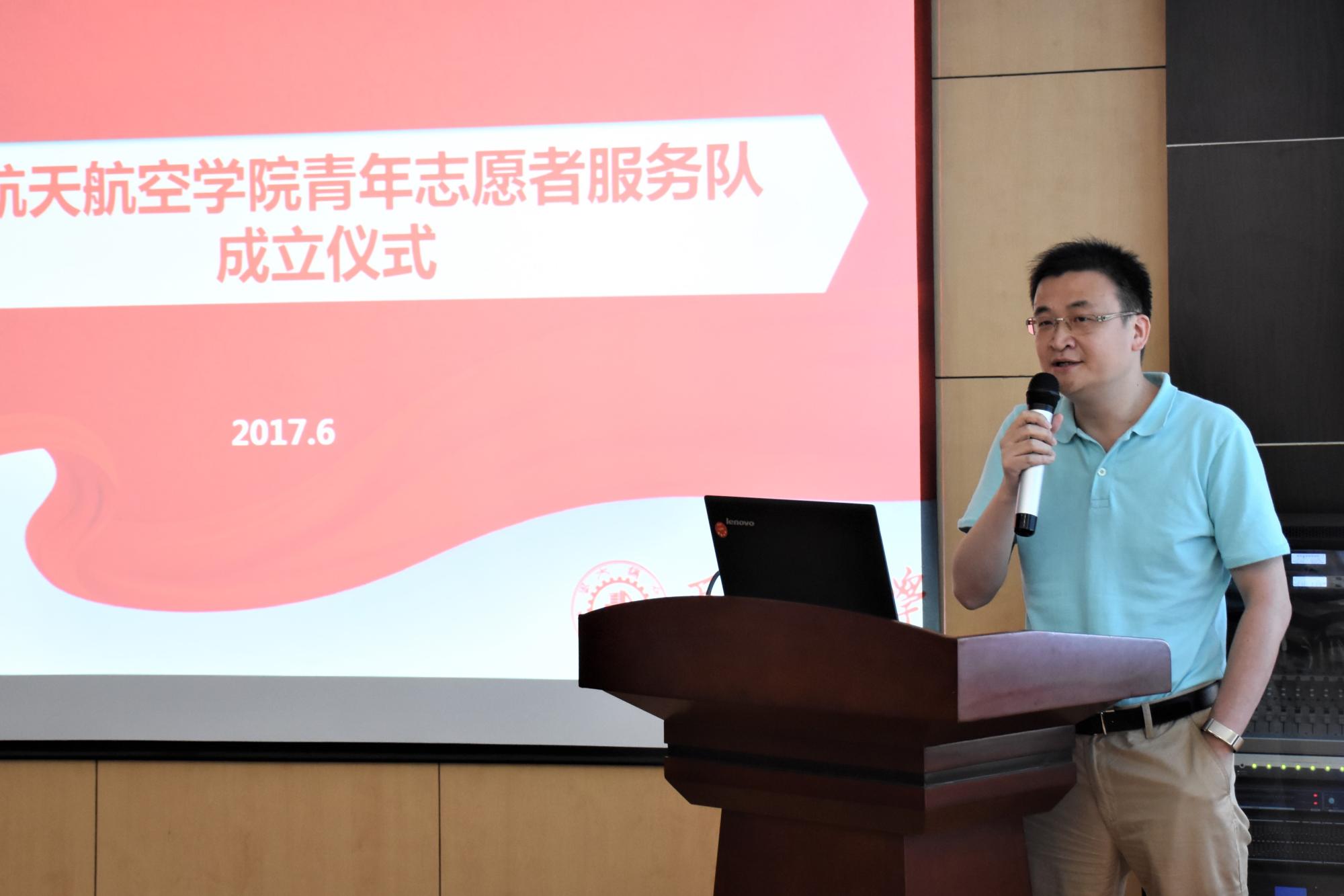 举行了青年志愿者服务队成立仪式,出席成立仪式的有航天学院院长申胜平教授,党委书记徐自力教授,副书记陈永华副教授,团工委书记李昱静老师以及青年志愿者服务队的全体成员。成立仪式由陈永华副书记主持。