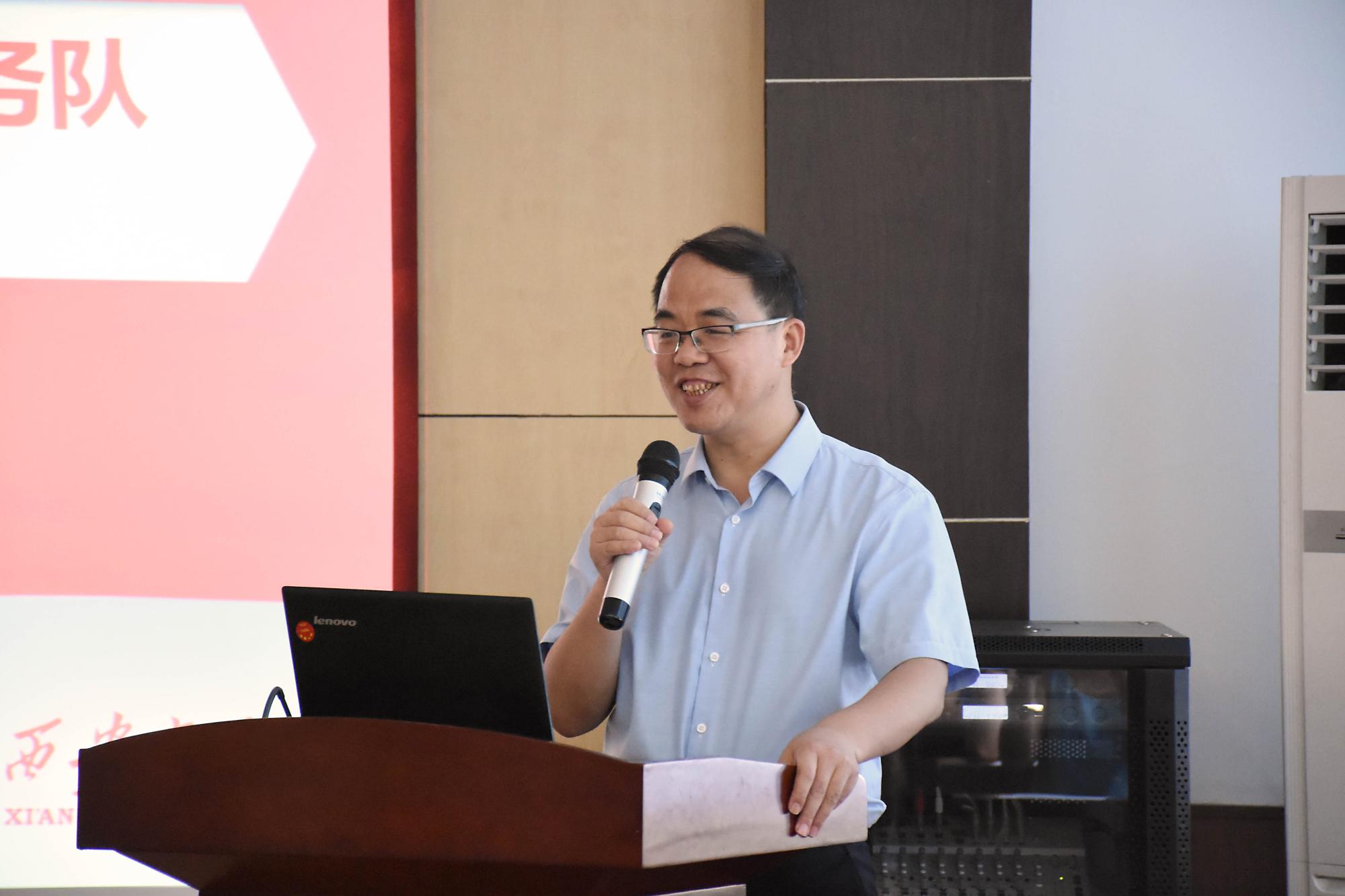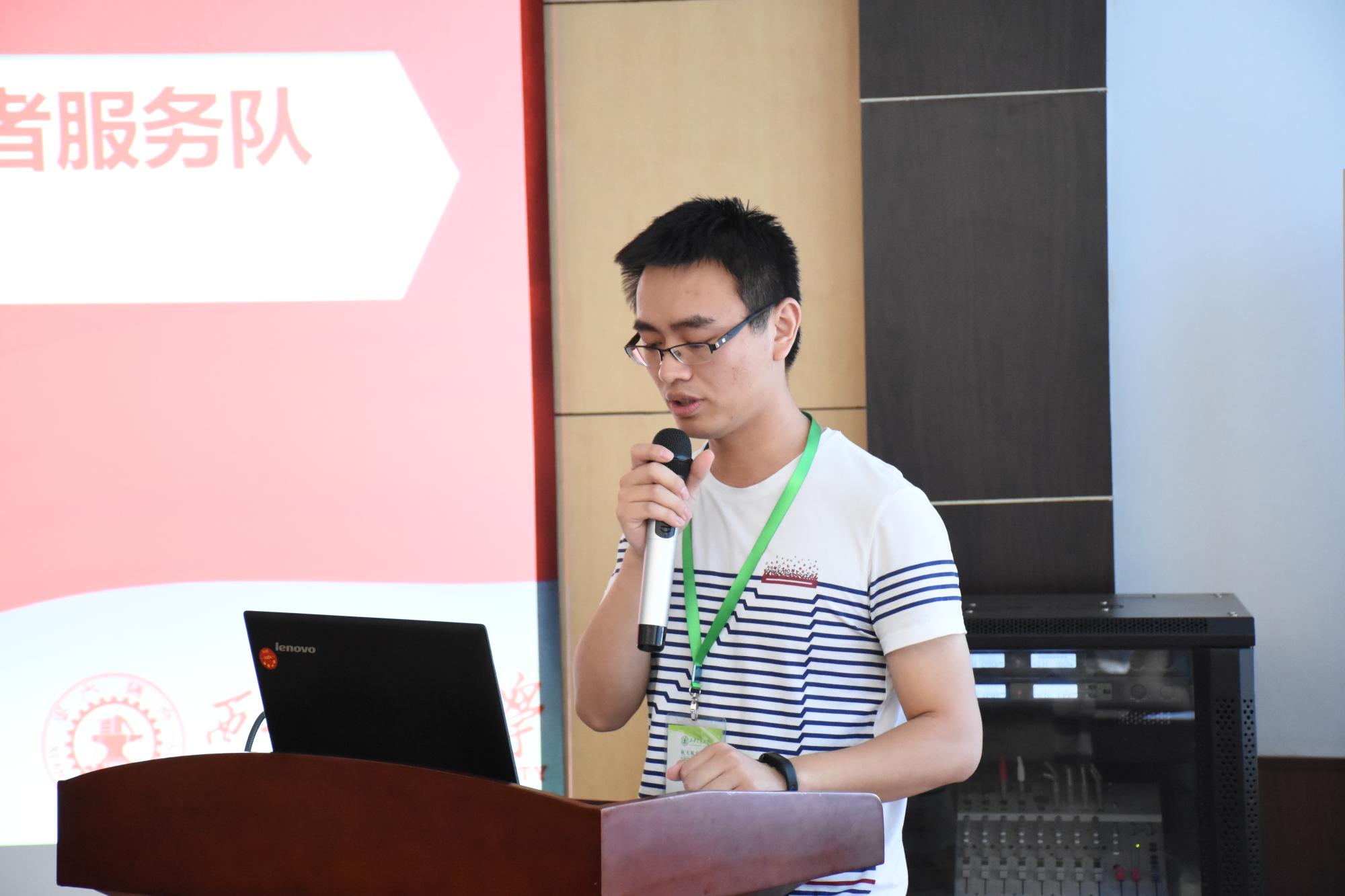 李昱静老师从设立初衷,组建流程、志愿者服务队主要活动三个方面汇报了青年志愿者服务队的组建情况。随后,志愿者代表徐宗真同学代表全体志愿者发言并带领志愿者宣誓。