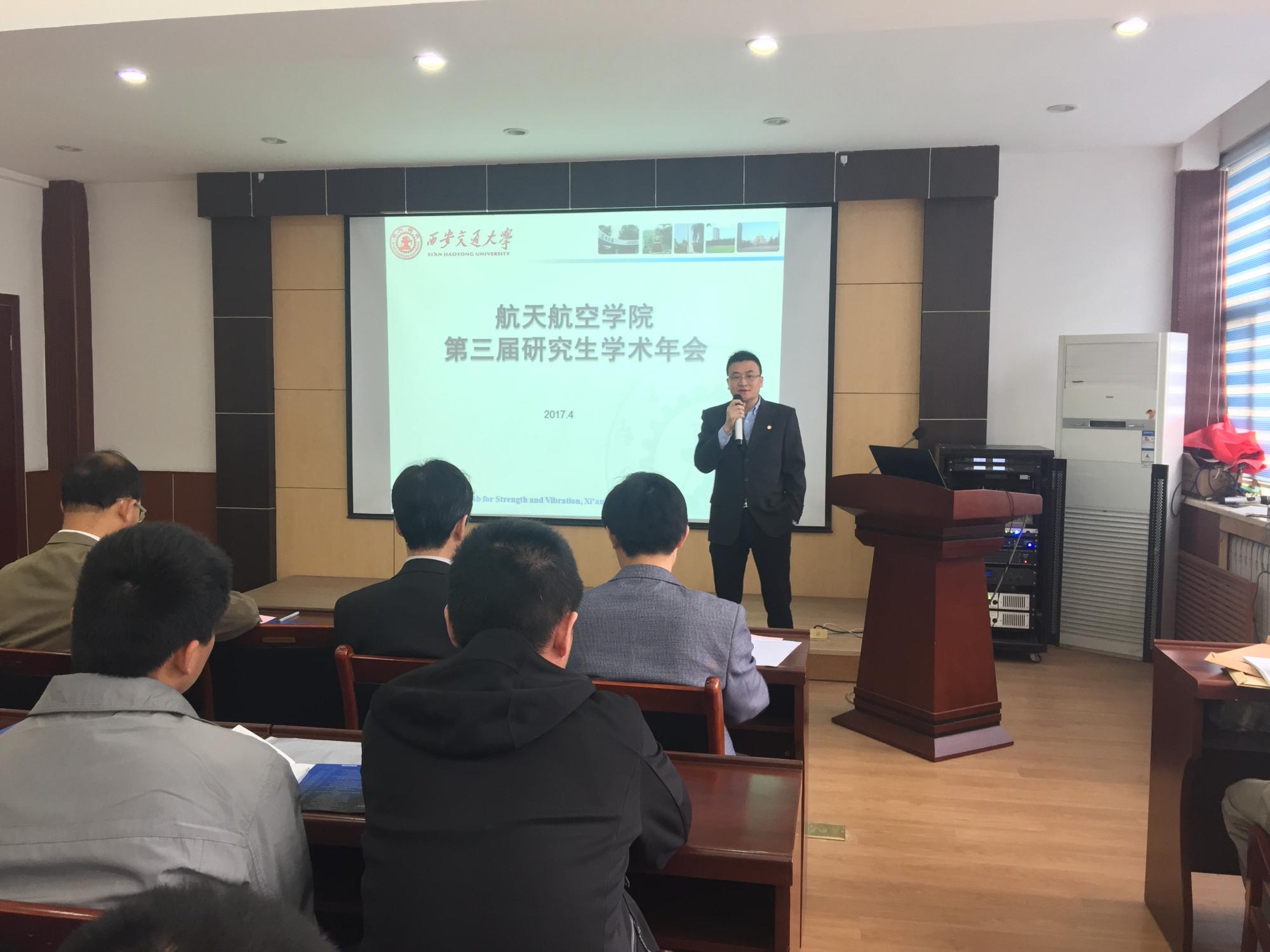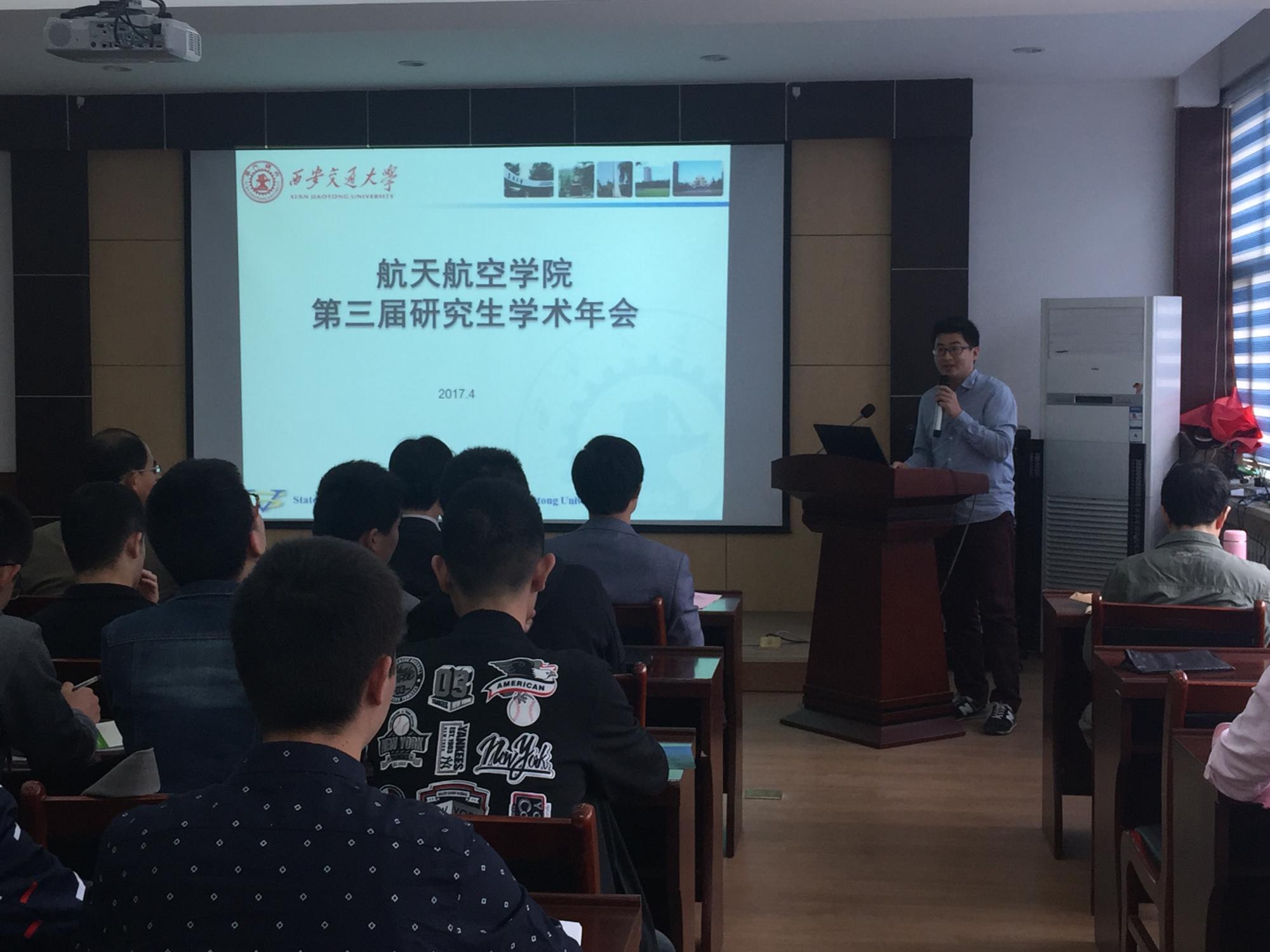 2017年4月26日上午8:30,色情网 第三届研究生学术论坛在学院第五会议室隆重举行。出席此次学术年会开幕式的领导有航天学院院长申胜平教授、航天学院党委书记徐自力教授、副院长李跃明教授、党委副书记陈永华副教授,空军工程大学航空航天工程学院研究生大队三队队长周友运中校,参加此次开幕式的还有空军工程大学、西北工业大学以及我校航天学院的研究生代表等。