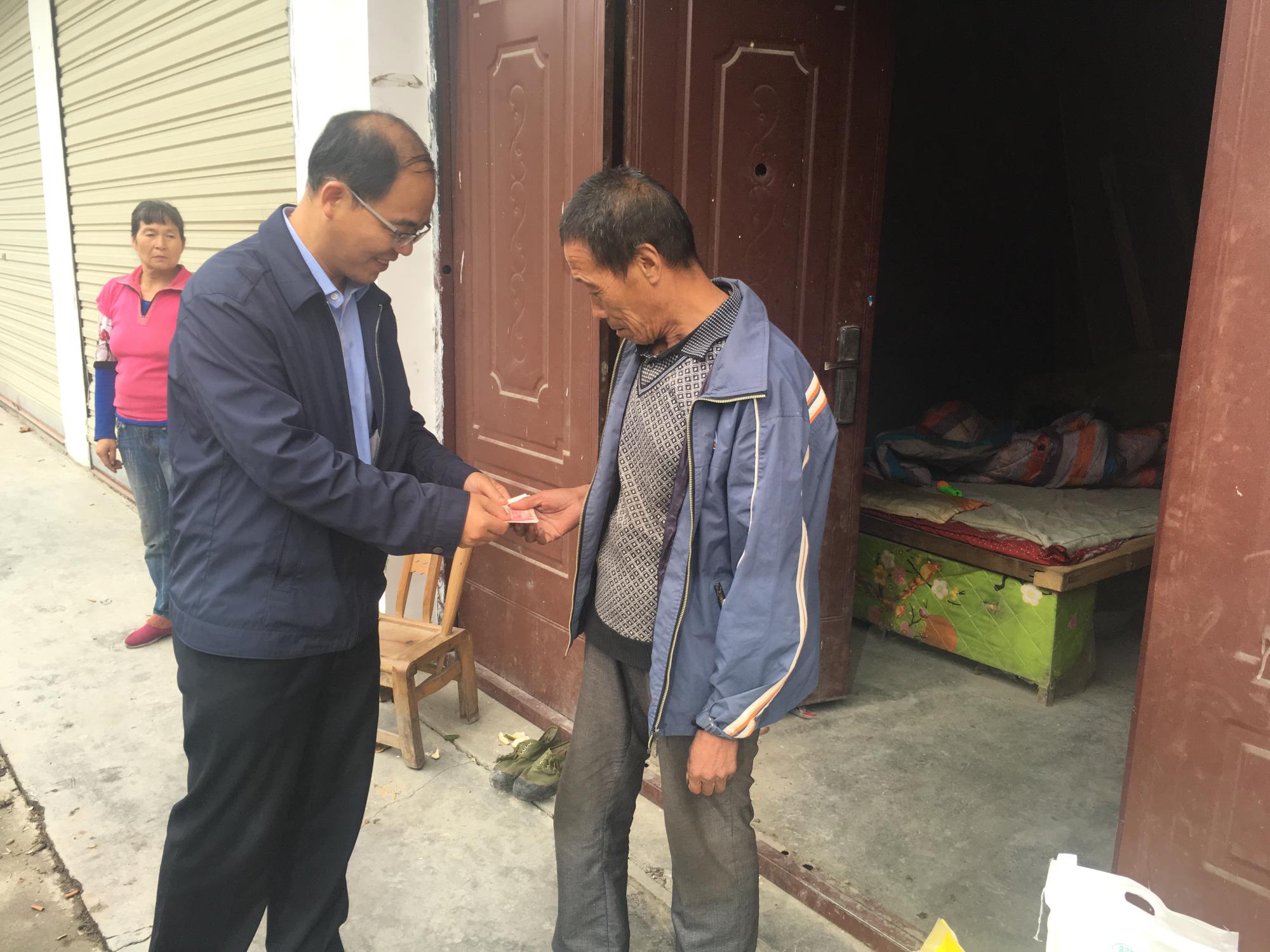 在学校驻村干部缑文恩主任、磨沟村党支部汪书记及其他村干部的陪同下,学院徐自力老师一行人前往所对接的贫困户家中。根据学校扶贫工作安排,航天学院所结对帮扶的是磨沟村贫困老人黄友兹夫妇。黄友兹老人今年66岁,妻子身患残疾,夫妇两人均不具备从事重体力劳动的能力,家中没有农田,没有收入来源,生活十分困难。徐自力老师一行人为他们送去了米、面、油等慰问品及500元慰问金,并向黄友兹老人了解了他们的生活情况和经济情况。
