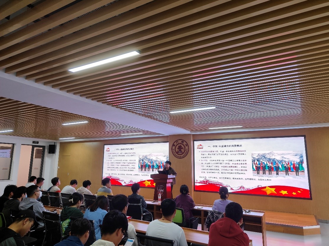 博士力学第三党支部的林睿捷进行了主题为“学习研讨中国——中亚峰会上的新时代中国”的分享。他讲到,在此次中亚峰会上,各方高度评价共建“一带一路”倡议对引领国际合作的重要意义,各方愿继续巩固教育、科学、文化、旅游、考古、档案、体育、媒体、智库等人文合作,推动地方省州(市)交流,促进更多地方结好,丰富青年交流形式,开展联合考古、文化遗产保护修复、博物馆交流、流失文物追索返还等合作。各相关方将积极推动互设文化中心。中方愿继续向中亚国家提供政府奖学金名额,组织相关领域专业人才赴华参训、进修和交流,促进“鲁班工坊”职业教育发展,对加强人文合作、促进民心相通具有重要意义。