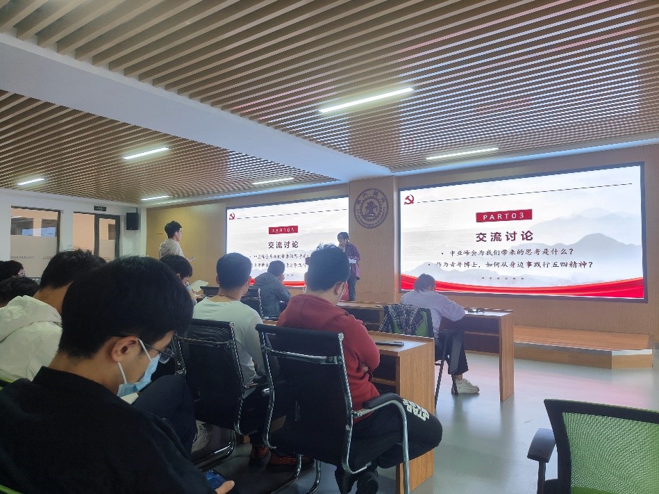 与会同学们围绕“中亚峰会为我们带来的思考”和“作为青年博士如何从身边事践行五四精神”两个问题展开了热烈地交流。