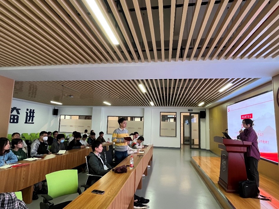 最后,卢老师对参会学生党员们提出了三个点建议,一是当代博士生党员要有较强的独立思考、判断能力,要更加关心国家大事和国际局势,培养锻炼自己的政治敏锐性;二是在谈论文化交流和科学交流时,最好的方式就是切身地实践。正所谓“读万卷书,行万里路”,学校和学院提供了良好的对外交流平台,同学们更应当把握住机会;三是博士党员更应该拿出积极向上的人生态度,在科学自信和文化自信上起到先锋模范作用。中亚峰会的成功召开彰显了中国国力的提升,而中国国力的提升正是因为一代代青年人不断地践行五四精神,当代博士更应继承弘扬和发展五四精神,为科技自力自强奉献自己的力量。