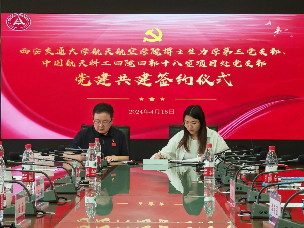会上,中国航天科工四院四部十八室项目处党支部与博士生力学第三党支部签订结对共建协议书,以党建业务双融双促为导向,组织开展业务工作交流,在科技创新、人才培养、专业技术等工作中广泛开展合作,激发双方结对党员担当实干、创新创效、拼搏奋进的干劲和热情。