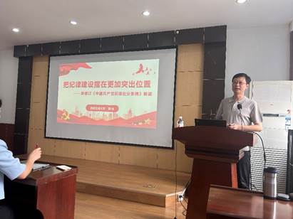 韩锐教授首先讲解了《中国共产党纪律处分条例》修订的重大意义,指出《条例》是总结从严管党治党经验,实现制度与时俱进的实践要求。他从严明政治纪律和政治规矩,加强全方位管理和经常性监督、引导激励党员干部敢于担当、积极作为,坚持党性党风党纪一起抓,促进执纪执法贯通等5个层次深入分析了《条例》修订的主旨要义;并以鲜活生动的案例点明了党员应当如何做学纪知纪明纪守纪的表率。