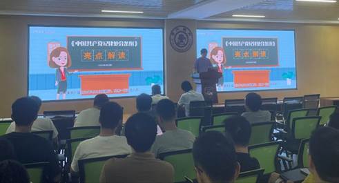 2022级硕士生第一党支部王瑾首先播放《中国共产党纪律处分条例》(以下简称《条例》)亮点解读视频,共同学习、准确理解《条例》的丰富内涵。