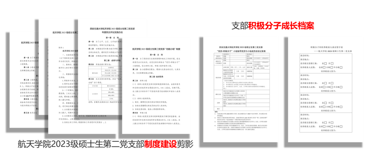 在过去不到一年里,支部依托“三会一课”制度,积极响应“两学一做”号召,开展3次支部书记讲党课、4次联学联建、5次党员大会、6次外出实践访学、7次专题学习研讨、8次组织生活。支部通过前往西迁博物馆、照金薛家寨、陕西省保密教育培训基地等地开展研学,将理论学习与情景教育相结合;支部注重党性教育与专业背景相适应,通过前往航天四院、西安卫星测控中心等地参观调研,通过参加“与大师对话”——钱学森纪念园落成仪式(活动期间支部成员任承昊同志接受陕西省新闻联播采访),切实提升航天学子的责任感与使命感。
