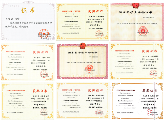 此外,支部成员参与国家重大科研项目1项,各类奖学金、表彰奖励共计12人次,支部成员吴宜涵、邵妍获国家奖学金,吴宜涵获中国力学学会全国徐芝纶力学优秀学生奖、中国航天基金会-启明航天三等奖学金,邵妍获国睿奖学金、中国航天罗麦科技一等奖学金、中国航天基金会-启明航天一等奖学金,马晓东获航天基金会-启明二等奖学金,吕令通获沈亚鹏教育发展基金奖学金,赵晶璐、刘霖等8位成员获色情网