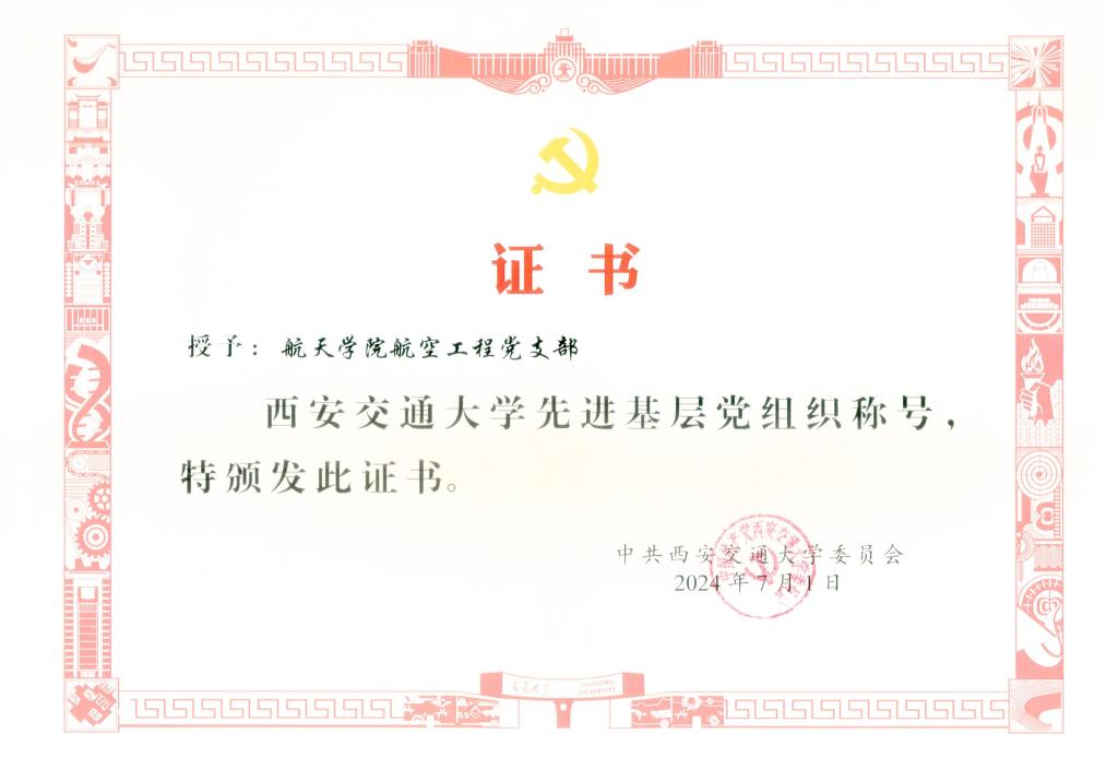 航空工程支部自成立以来,始终坚持党的领导,积极发挥基层党组织的战斗堡垒作用,团结凝聚教师为航空宇航学科建设添砖加瓦。党支部始终把思想政治建设放在首位,积极组织党员学习党的理论和政策,开展形式多样的主题教育活动。通过定期召开党课、组织学习习近平新时代中国特色社会主义思想、组织线上线下理论学习等方式,不断增强党员的政治素养和理论水平。党员思想建设工作稳步推进,扎实有效。支部党员荣获陕西省技术发明一等奖、二等奖、“王宽诚青年学者”等多项荣誉。