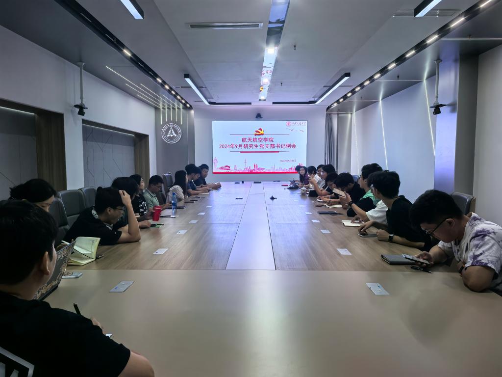 新学期新征程,新部署谋新篇。日前,航天学院2024秋季学期第一次研究生党支部书记例会于力行楼2-4193举行。航天学院党委副书记李昱静,分党委秘书韩阳,研究生辅导员李宇辰、王若宜及各研究生党支部书记、24级新生班级代表出席会议。会议由研究生兼职辅导员邢文思主持。