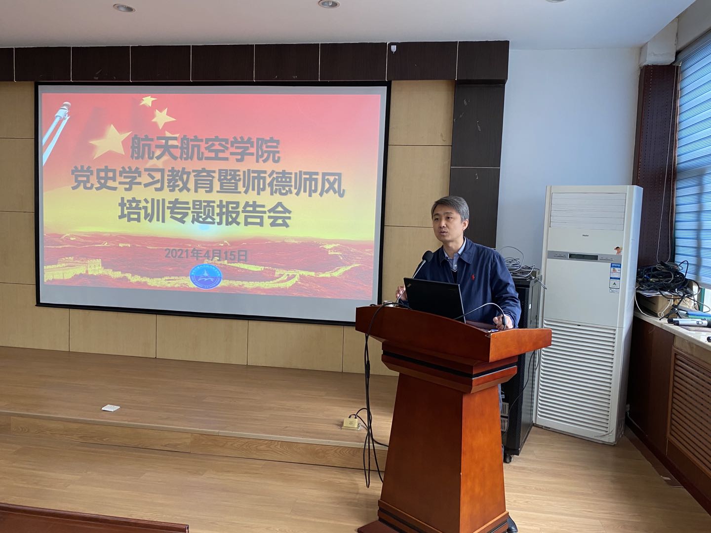 召开了党史学习教育专题报告会。此次报告会是学院党史学习教育中“专家领学”的重要环节。我校马克思主义学院副院长马忠教授为做了题为《学史明理的哲学思考》专题辅导报告。学院全体教职工参加了会议。航天学院李小跃书记主持报告会。