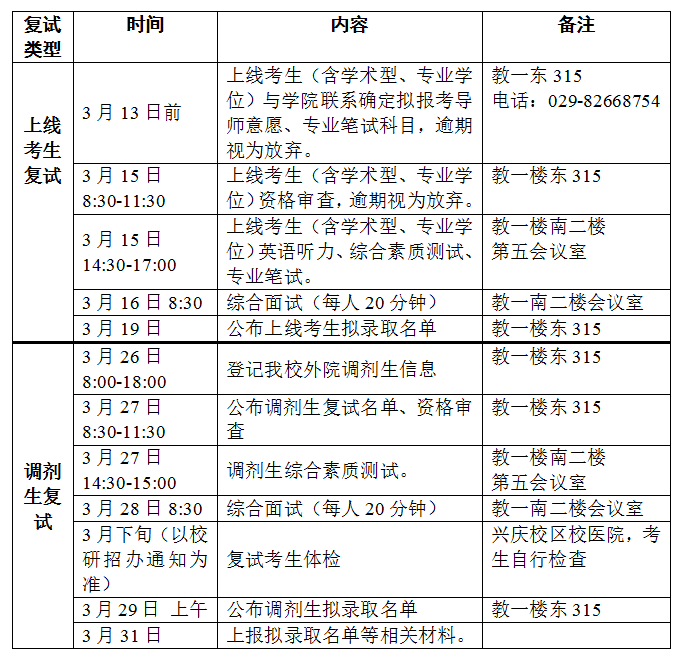 复试工作总体安排如下:
