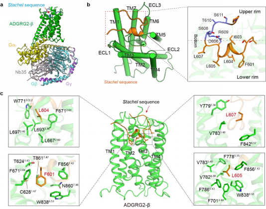 a. Stachel序列激活的ADGRG2-β-Gs复合物结构模型。