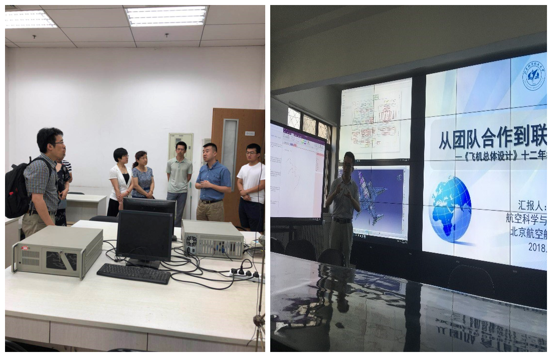 当日下午,代表团赴北京航空航天大学宇航学院和航空学院调研,分别参观了模态测量与控制和目标跟踪实验室,人机工效实验室、流体力学实验室以及飞行器总体设计实验室。并与航空科学与工程学院副院长李道春教授、各教学系主任进行座谈,了解了对方飞行器设计与工程专业本科生培养方案和大类招生学生分流举措等。