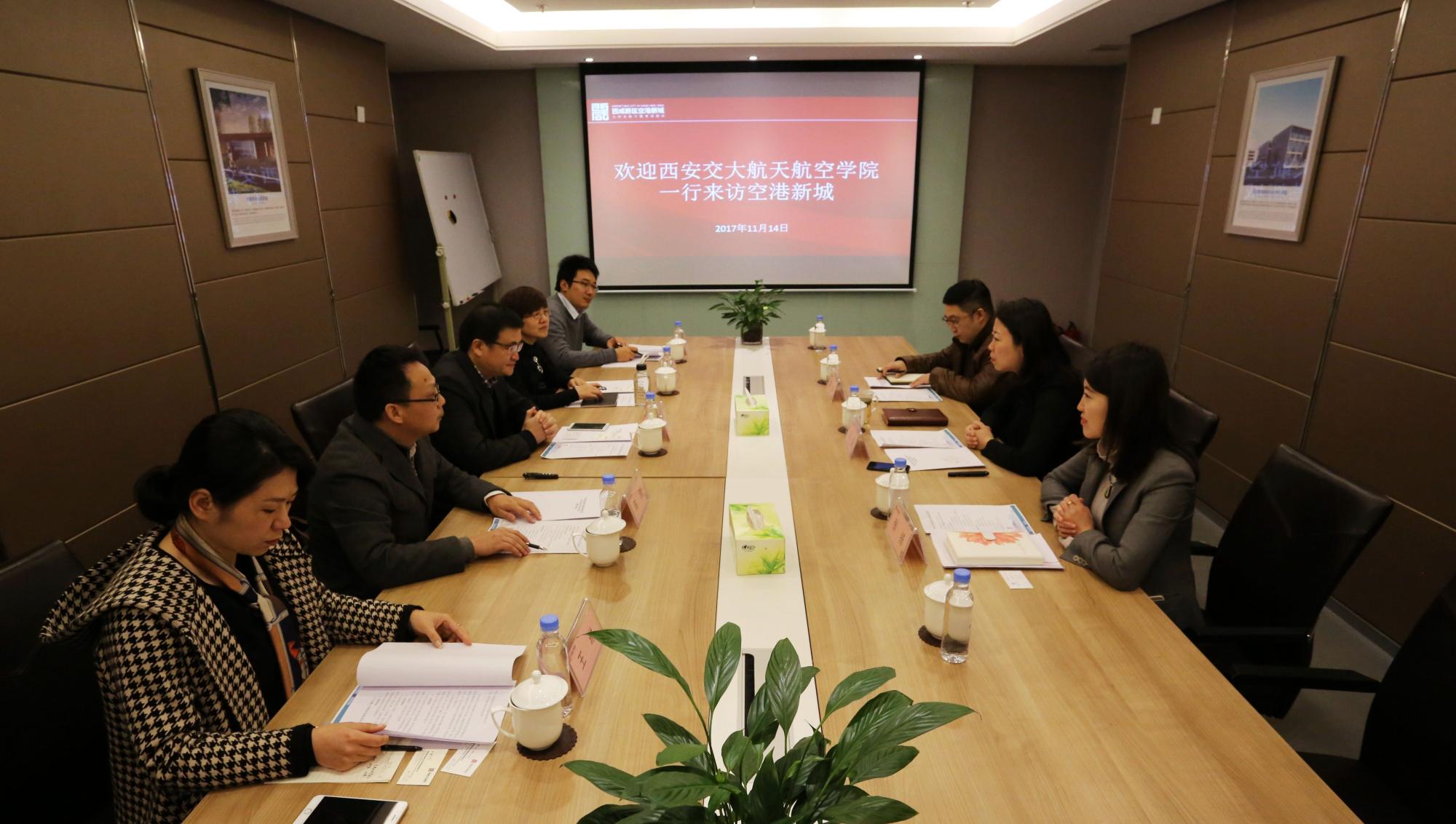 申胜平院长带队,一行5人访问了西咸新区空港新城管委会,与管委会主管领导和相关部门负责同志就双方战略合作相关事宜进行深入磋商。