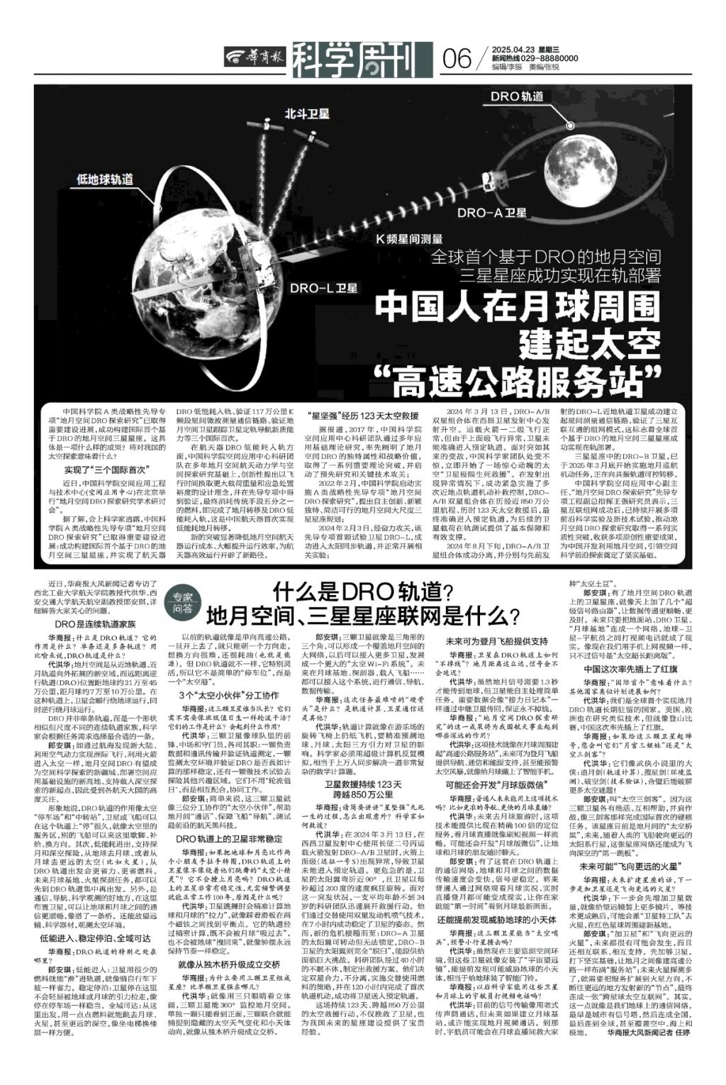 中国科学院A类战略性先导专项“地月空间DRO探索研究”已取得重要建设进展,成功构建国际首个基于DRO的地月空间三星星座。具体是一项什么样的成果?将对我国太空探索意味着什么?近日,华商报大风新闻记者专访了色情网