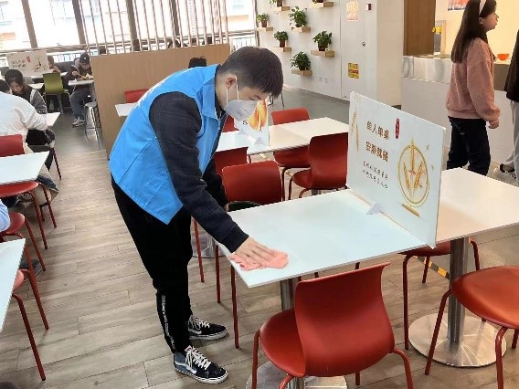 硕2089团支部积极响应参与“文明餐桌”的志愿活动,活动内容包括测体温,协助同学们有序排队就餐,并积极清理餐桌卫生的任务。