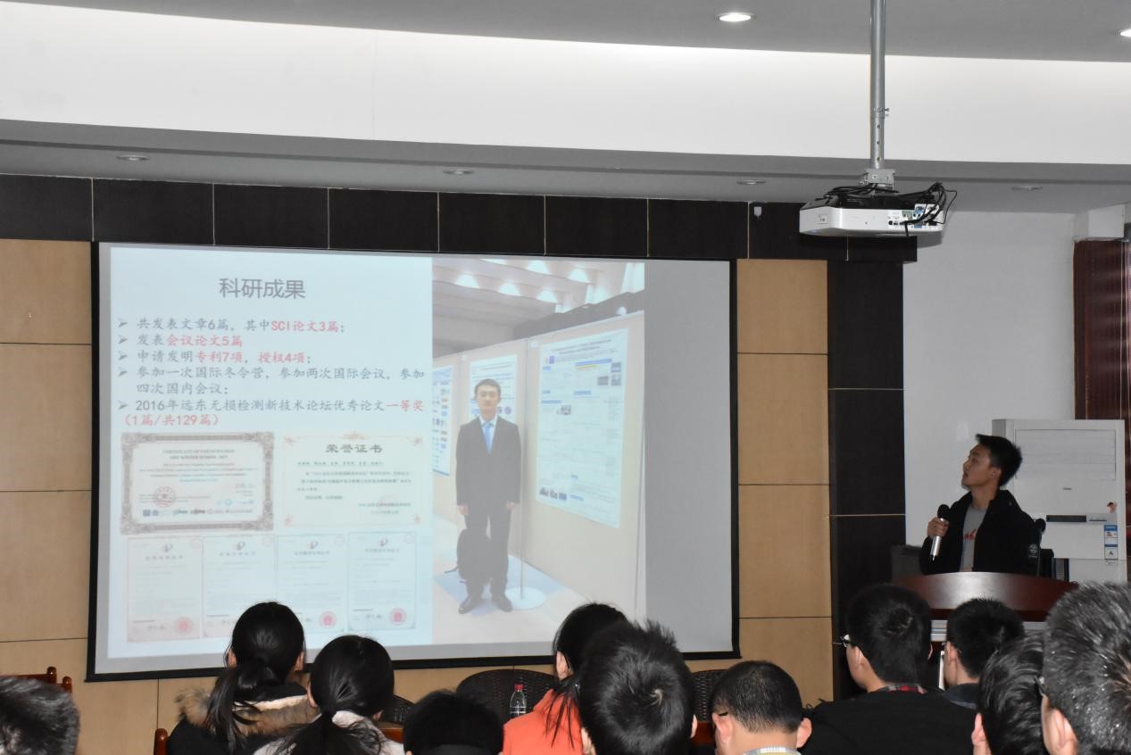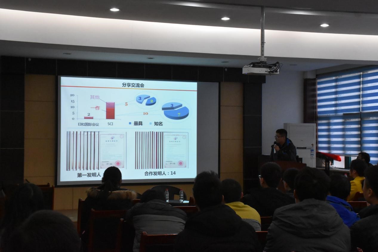 随后三位分享嘉宾分别作了简短的报告,讲述他们在科研、学习生活中的成绩与体会。马国亮重点讲述了自己的科研经历,同时为大家分享了科研以外的学生工作经历等;田明明从做好计划、正视问题和善于记录总结三方面阐述了自己的科研新的,重点介绍了自己参加学科竞赛的丰富经历和心得体会;张舒文介绍了自己的科研情况,并从学什么、时间规划、思维方式、科研态度等几个方面为大家讲述了自己在科研生活中的经验及体会。