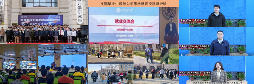 航天学院博士力学第四党支部是涵盖力学和机械专业博士研究生的纵向党支部,支部横跨三个年级,现有成员32名,包括中共党员25名,入党积极分子7名。支部坚持以习近平新时代中国特色社会主义思想为指导,深入学习习近平总书记系列讲话精神,牢记习近平总书记对青年的殷殷重托,形成了“思想引领、奋发昂扬、奉献友爱、创新领军、担当作为”五措齐驱的支部建设理念,秉持“知责于心,担责于身,履责于行”的准则,面向科技前沿,面向国家重大需求,落实产学研一体化要求,培养当代青年博士的使命责任和担当意识,坚持所研所学服务国家,让青春在奋斗和奉献中焕发绚丽光彩。