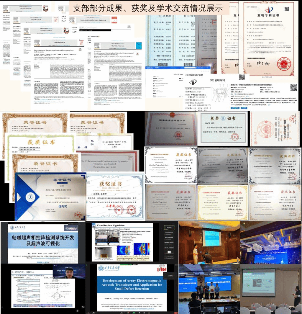 博士力学第四党支部充分发挥力学专业特点,将自身科研与服务社会相结合、与国家重大战略需求相结合,支部成员在国内外学术期刊共发表学术论文42篇,其中SCI论文40篇,EI论文2篇,SCI论文最具学术影响力期刊占比62%,中科院一区占比40%。授权国家发明专利6项,软件著作权2项。获得互联网+、中国研究生电子设计竞赛、腾飞杯等校级及以上科技竞赛奖励12项。各类奖学金、表彰奖励16人次,参评奖学金成员获奖占比达70%。参加学术会议24人次,口头报告9场次,获评优秀报告3场次。支部相关事迹及获奖情况被陕西科技报、交大新闻网、航天学院官网等校内外媒体报道31次,累计阅读量3.5W+。支部要求党员同志立足新时代,担当新使命,把论文写在祖国大地上,把青春融入到建设社会主义现代化强国伟大征程中。