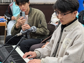 活动伊始,两校三名同学带来了精彩的钢琴演奏,曲目包括经典歌曲《童话》、充满动感的《龙卷风》即兴钢琴弹唱,以及深情悠扬的钢琴独奏《愿与愁》。他们灵动的手指在琴键上跳跃,音符流淌而出,深深吸引了在场观众。现场掌声雷动,气氛一度被推向高潮,为活动增添了一抹亮色。