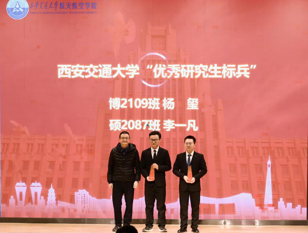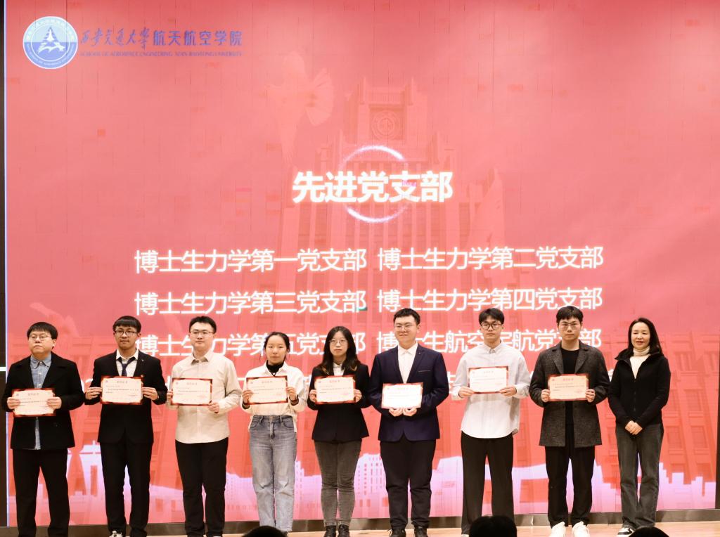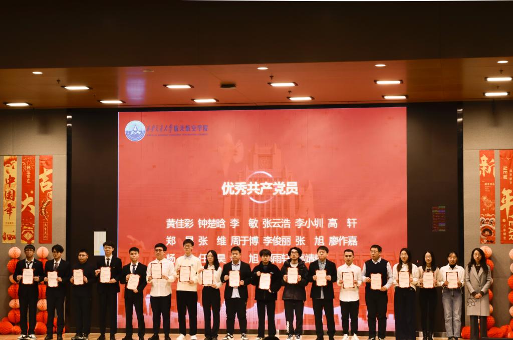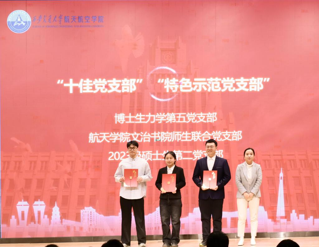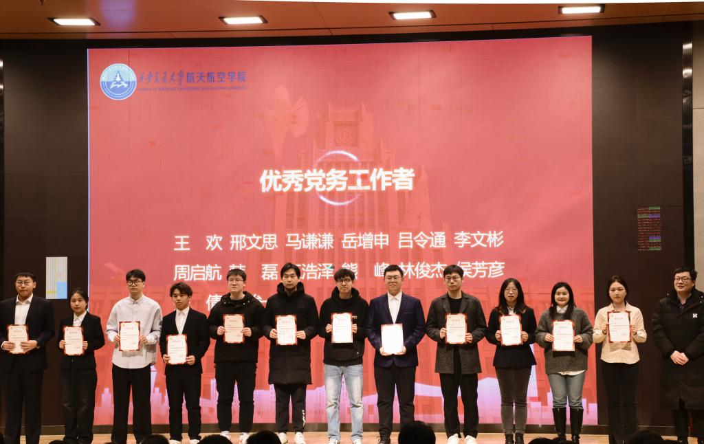 韩阳、陆天舒和车春莉分别为获得2024年航天学院“优秀共产党员”“优秀党务工作者”和“先进党支部”荣誉称号的个人和支部代表颁奖。