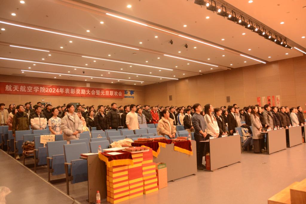 表彰阶段结束后,航天学院、材料学院联合迎新暨元旦晚会正式拉开序幕。现场气氛热烈,师生齐聚一堂,共同庆祝新年的到来。晚会节目单丰富多彩,分为“扉页”“绮梦”“河流”“融冬”四个篇章,充分展现了师生们的才艺与热情。