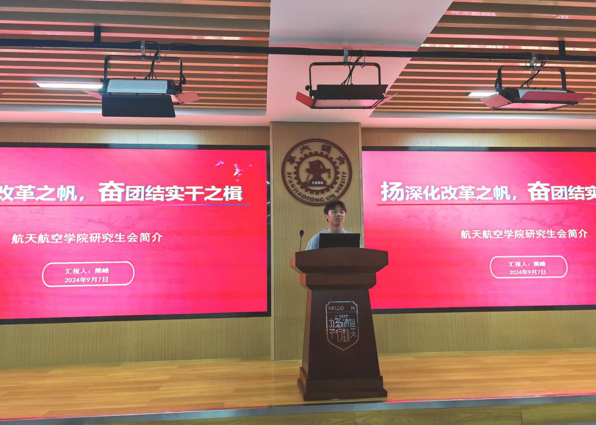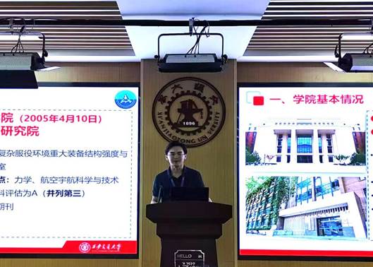 熊峰向全体新生介绍研会组织基本情况,并寄语师弟师妹要弘扬“西迁精神”,牢记院史院训,在未来成长为中国航天事业的中坚力量。