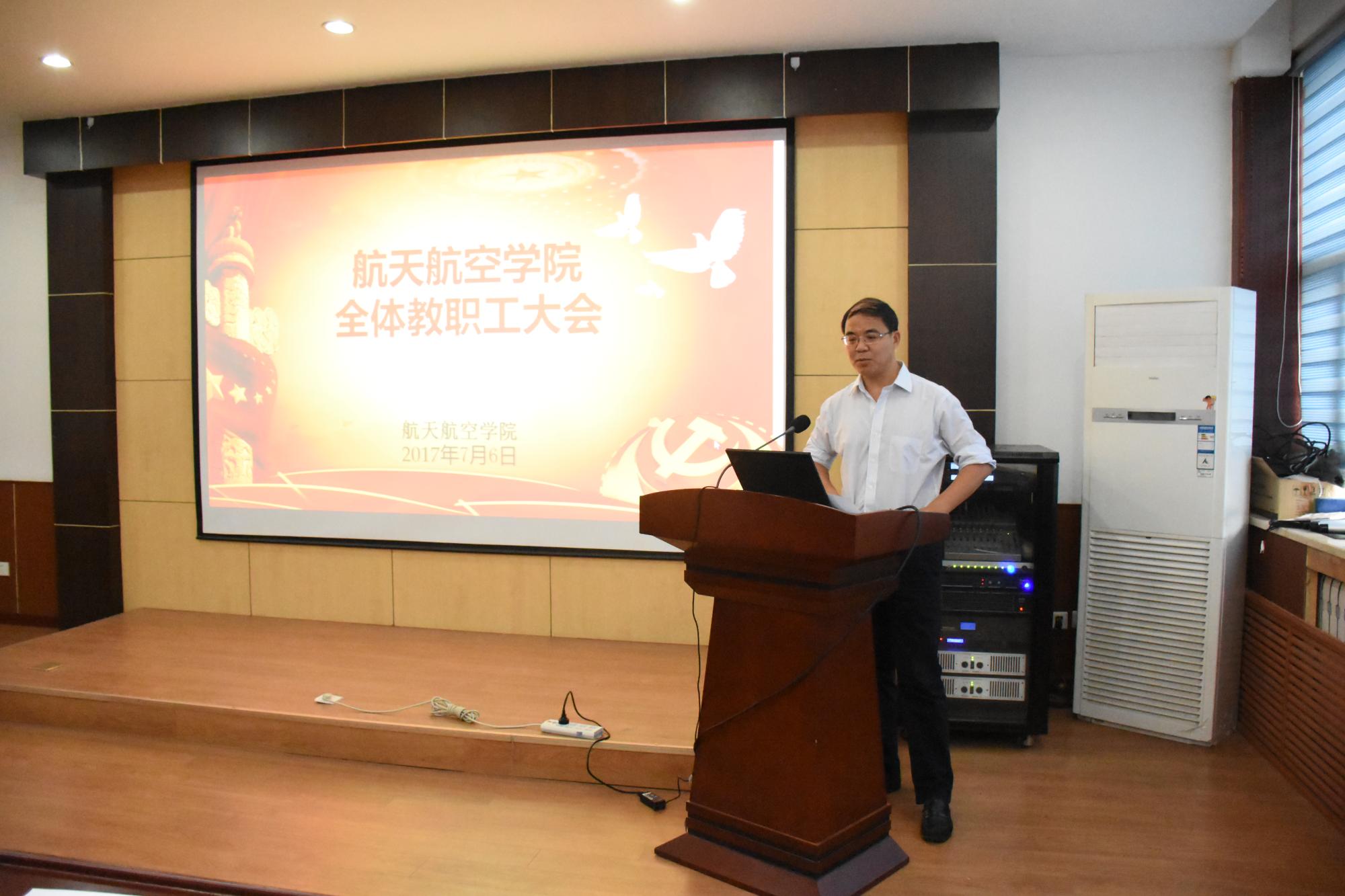 2017年7月6日,航天学院工会换届选举大会在学院二楼会议室顺利召开。航天学院在校全体教职工参加了此次大会。会议由学院分党委书记徐自力教授主持。