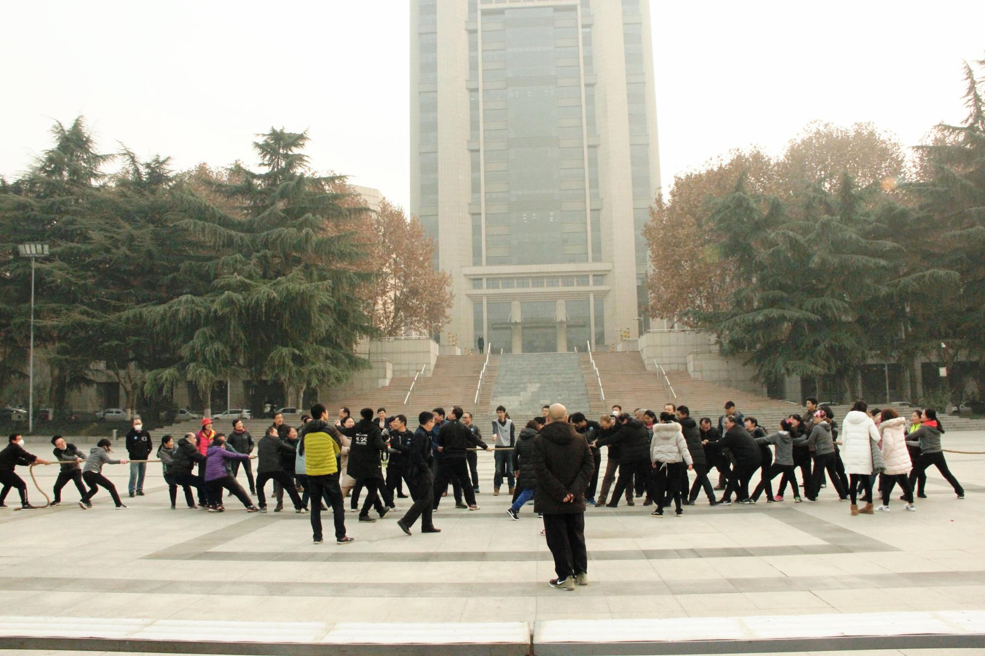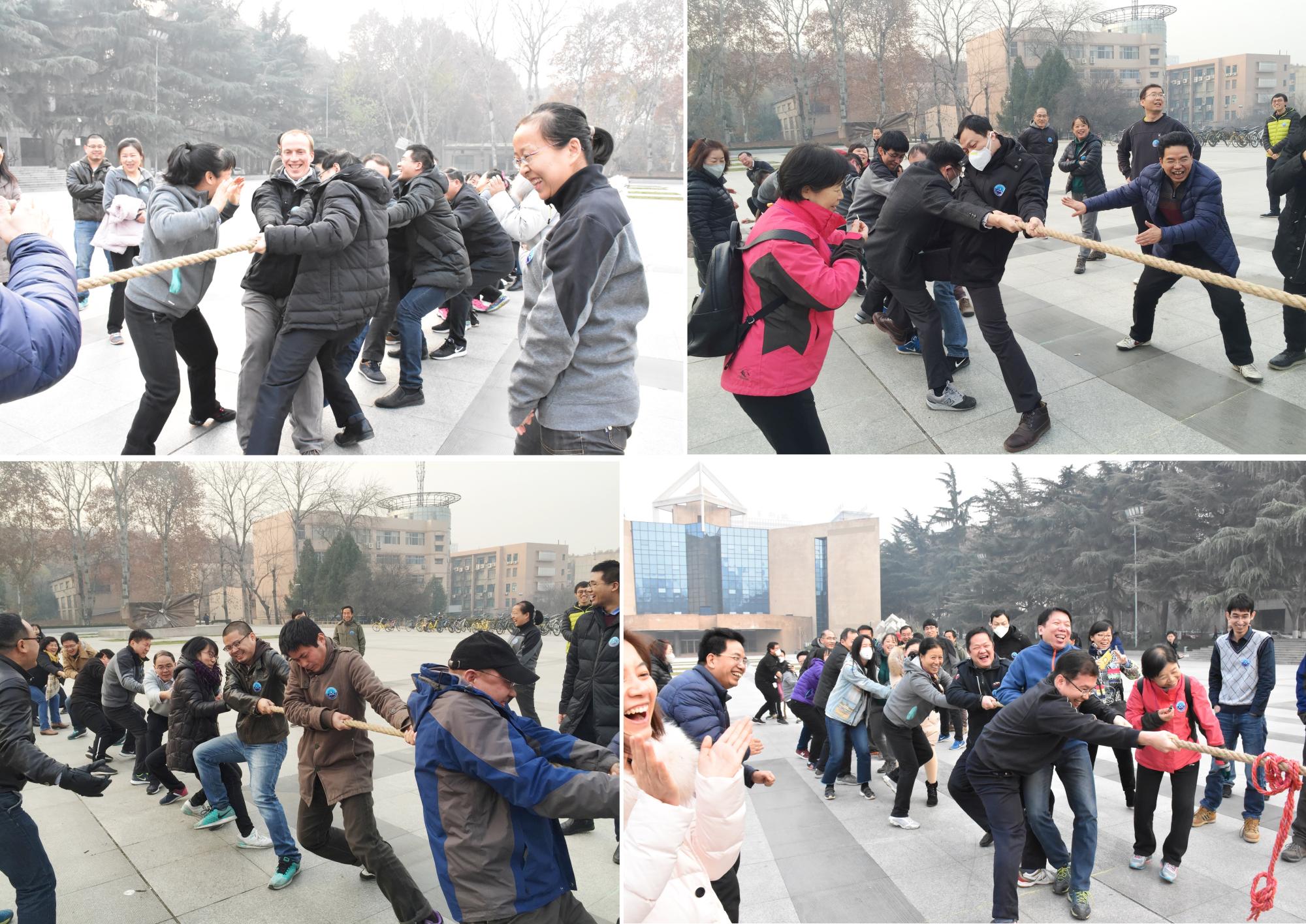活动第一项“迎元旦”拔河比赛于15:30首先在四大发明广场开赛,力学系、空天系、力学实验中心和院办联队(包括院办/国重/国际应用力学中心)共四支队伍参加。赛场上队员们个个热情高涨,默契配合,相互帮助、相互鼓励;赛场外,加油声、呐喊声、助威声此起彼伏,充分展示了我院教职工勇于拼搏、不懈奋斗的精神风貌。经过一轮轮耐力和体力的比拼,院办联队获得冠军;空天系获得亚军;力学实验中心和力学系分获第三、四名。