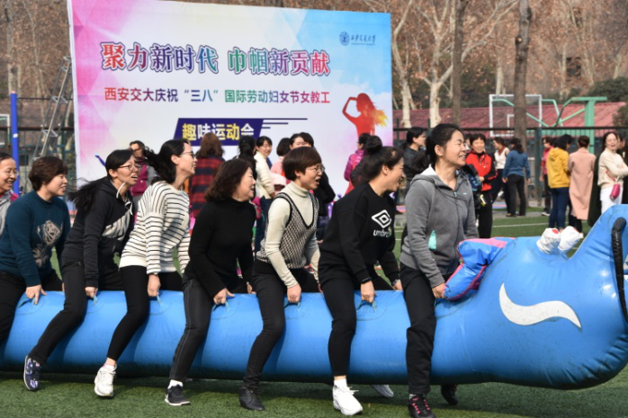 为庆祝“三八”国际劳动妇女节,进一步丰富全校女教职工文化生活,加强女教职工之间沟通交流,营造健康快乐的校园文化氛围,校工会、校女教职工工作委员会在兴庆校区西南足球场举办了“聚力新时代、巾帼新贡献——西安交大女教工趣味运动会”。我院女教职工积极参加了此次活动。