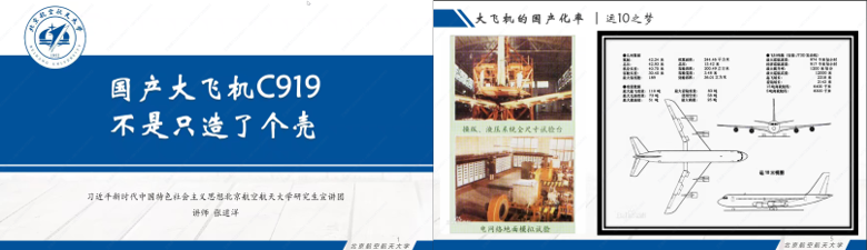 最后,北京航空航天大学研究生宣讲团讲师张道洋以“国产大飞机C919不是只造了个 壳”为题介绍了C919从无到有的历程。他主要从大飞机的国产化率、大飞机的北航贡献和大飞机的事业是星辰大海三个方面做了介绍。他提到C919产业链、价值链和创新链已经构建,未来中国大飞机的事业定是星辰大海,中国的大飞机的梦一定会实现。
