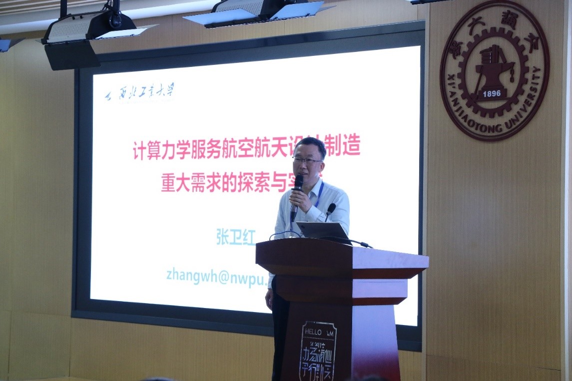 特邀报告环节,西北工业大学张卫红院士作了题为《计算力学服务航空航天设计制造重大需求的探索与实践》的报告,讲解了依托国家重点实验室制造领域体系布局,将计算力学的理论方法应用于航宇结构优化设计、大型复杂薄壁结构制造工艺和大型复合材料结构固化成型工艺,实现轻量化、高性能的目标。