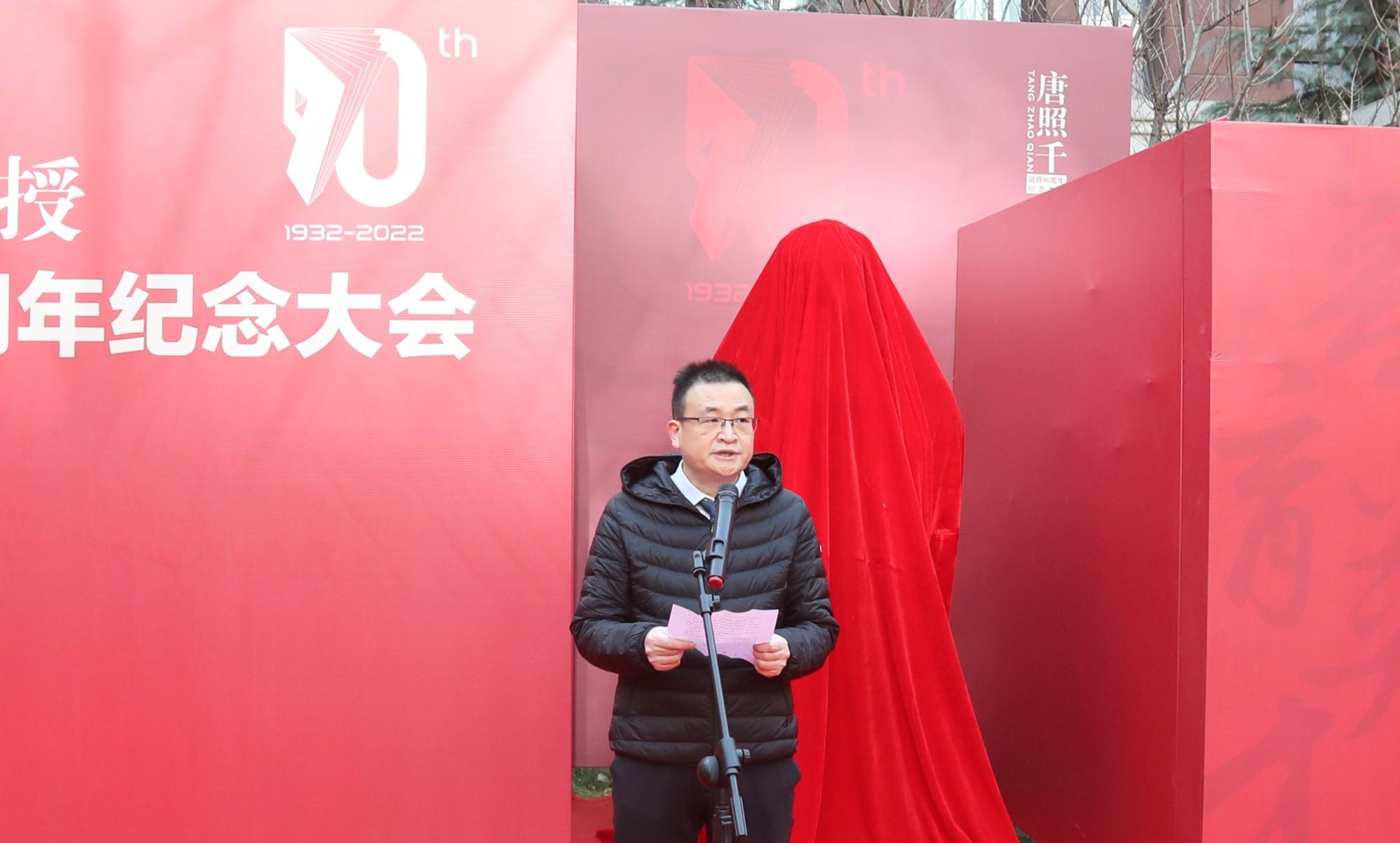 席光副校长、申胜平院长、何茂刚书记、王秋旺处长、共同为唐照千雕像揭幕。