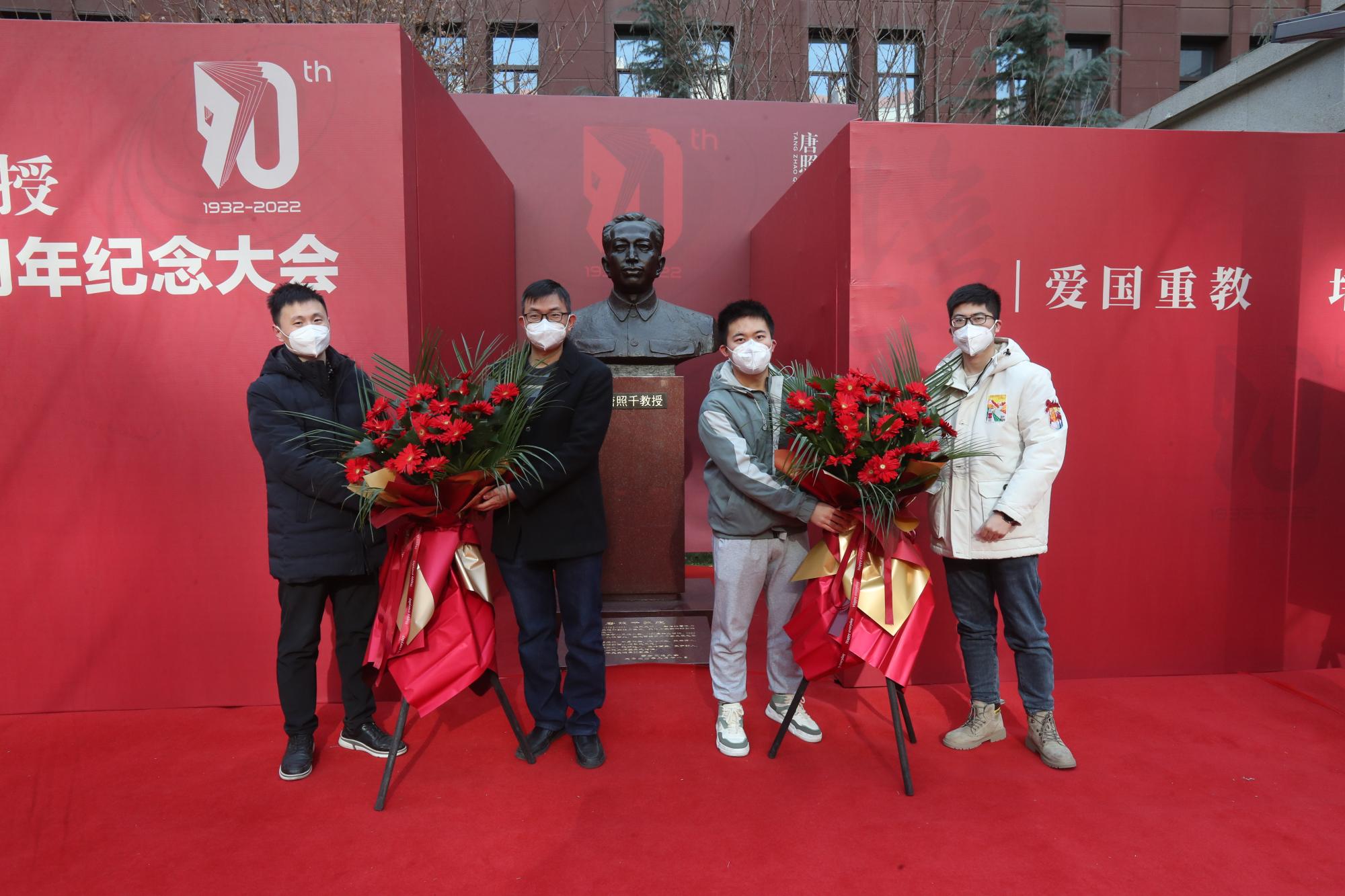 学院师生代表卢同庆教授、刘益伦教授,王一凡同学、张一鸣同学共同向唐照千雕像敬献了花篮,表达对唐先生的追思和敬意。