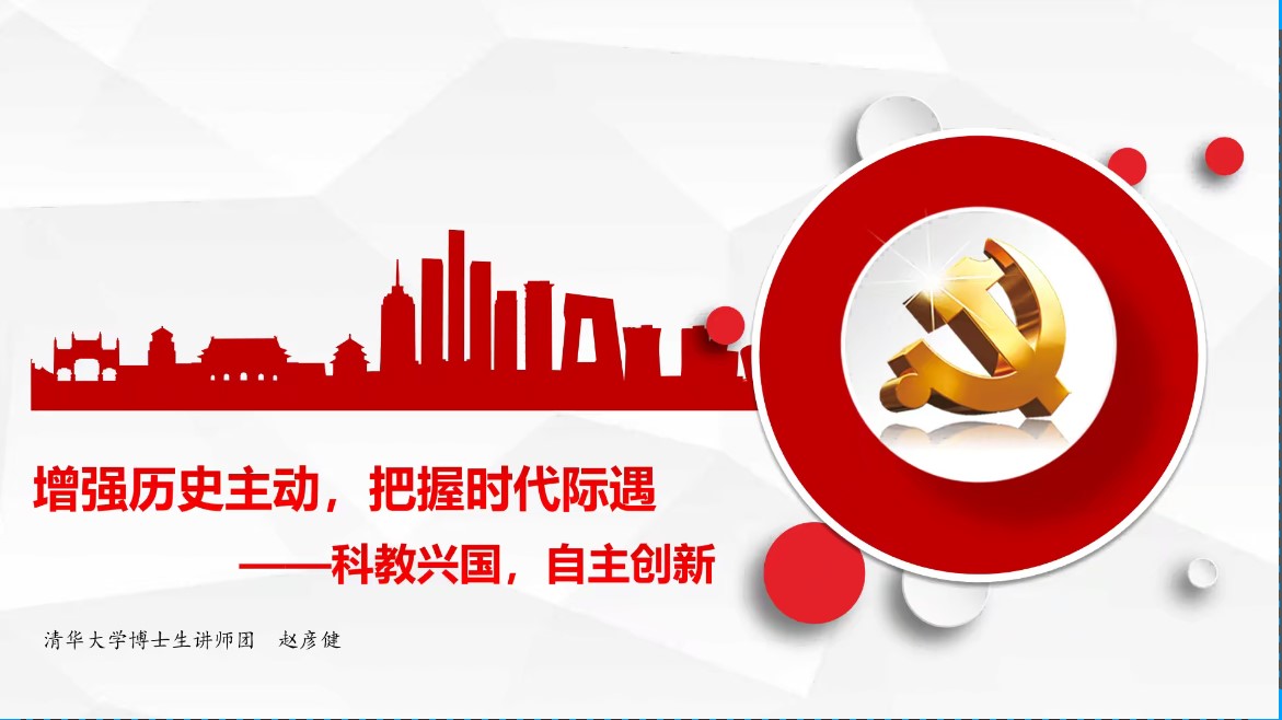 清华大学博士生讲师团赵彦健围绕“科教兴国,自主创新”开展领学。他首先介绍了什么是“硬科技”,并分析了造成中国硬科技和世界差距较大的原因。之后带领与会同志回顾了我国新时代十年的伟大变革,解释了什么是“中国式现代化”和“新发展格局”。他强调,实施科教兴国战略,强化现代化建设人才支撑,需要办好人民满意的教育,完善科技创新体系,加快实施创新驱动发展战略,深入实施人才强国战略。此外,赵彦健分别介绍了京津冀鲁地区、长江经济带地区、粤港澳大湾区的先进制造业发展情况。最后他强调,我们要肩负起时代赋予的光荣使命,敢于承担更艰巨的任务,应对更严峻的挑战,实现国家科技水平高质量发展。