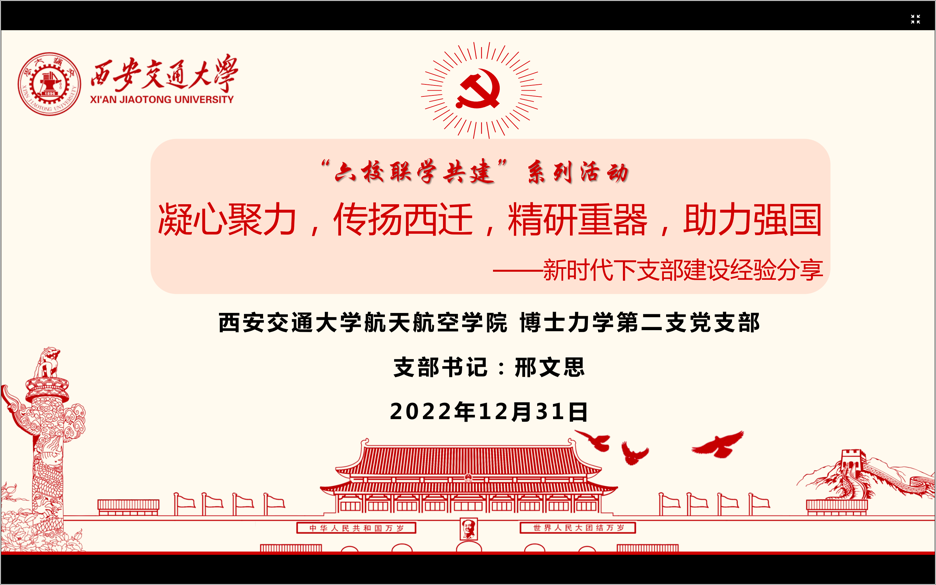 为回顾党的十八大以来,我国在科技创新领域取得的伟大成就,学习在力学、航空航天、能源、材料等工学学科重大科研领域中的杰出贡献者的精神事迹,2022年12月31日下午,北京大学工学院力学19博党支部联合清华大学色情网