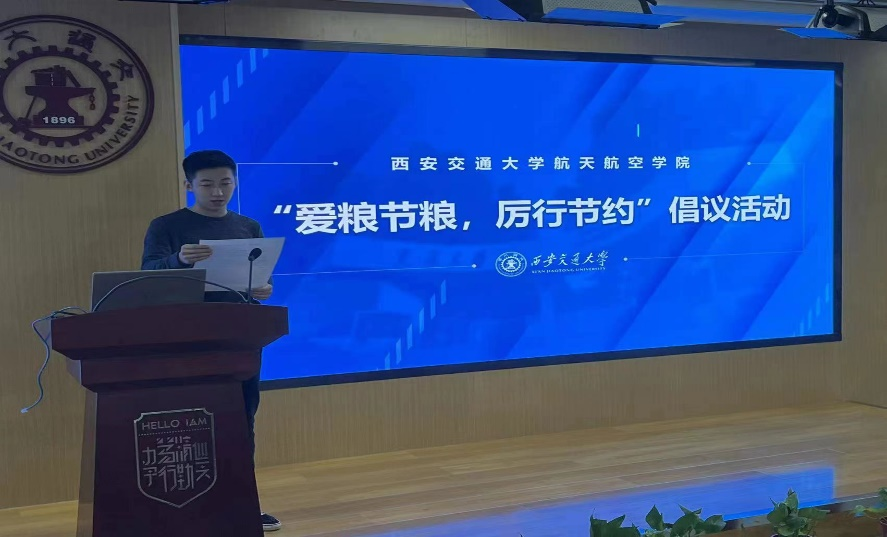 硕2089班团支部书记杜青阳首先向同学们发出“爱粮节粮,厉行节约”的倡议,得到了同学们的热烈反响,纷纷在倡议书上签字。