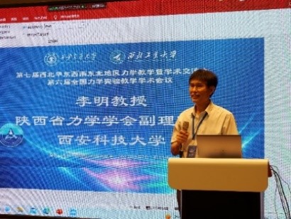 陕西省力学学会副理事长、西安科技大学李明教授代表陕西省力学学会致辞,介绍了陕西省力学学会教育科普工作委员会的定位,期望会议能促进一流力学人才培养,并预祝大会圆满成功!