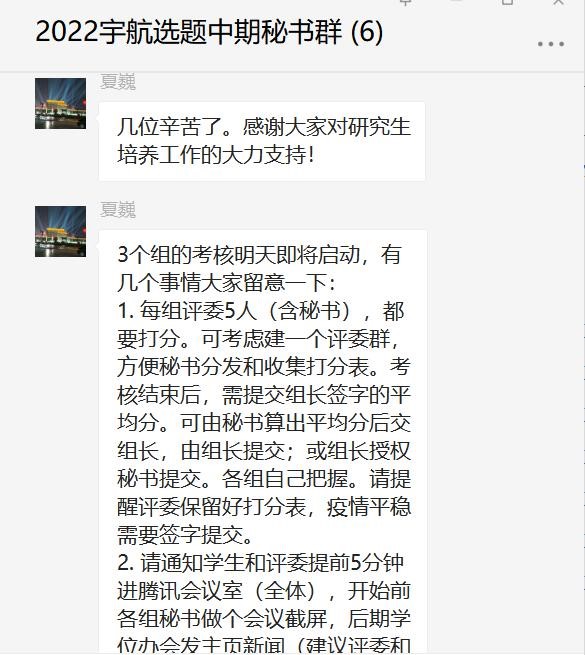 参加考核的同学们一致认为,疫情封控虽然给学习、生活带来一定不便,但是学院对考核流程的科学、合理、人性化安排使得自己仍能稳定发挥。硕0093班的严寒雪玉同学认为“线上答辩紧张感会更少”,并且会更“专注于语言表达的流畅清晰”;博2044班的谭楷同学说,虽然答辩过程中大家收到核酸检测通知,但是“老师们灵活调整,答辩和核酸检测都没有耽误”。