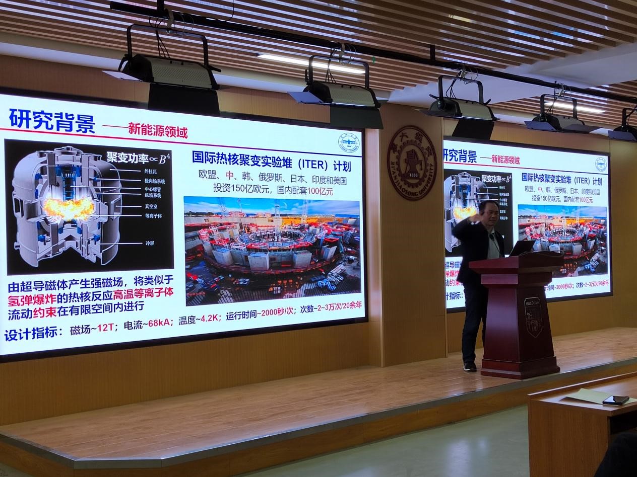 报告会伊始,申胜平院长向大家介绍了周又和院士的研究方向及其在学术上的突出贡献。随后,周又和院士从“力致”与“失超”的含义阐释讲起,分享了他所带团队在力致失超理论和实验研究途径方面的最新研究成果,重点介绍了超导材料及磁体在极端使役环境下的电-磁-热-力多场相互作用所导致的非线性力学变形、变形对超导性能退化影响的机制、对磁场特性的影响因素和“失超”的应变检测新途径等所开展的理论建模与定量分析方法、基础实验测量研究、全背景场力学实验测量的科学装置研制和新型超导材料开发制备等。