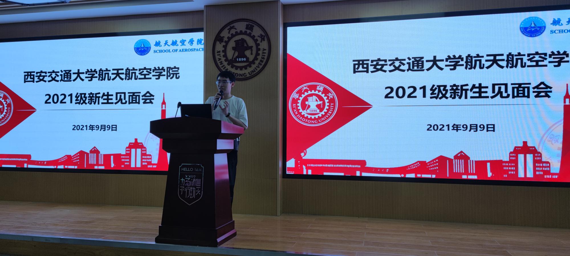 研究生会主席赵菲对航天学院研究生会的组织架构、各部门职能分布和工作展示进行了详细的介绍,热情邀请2021级新生加入研会,服务航院师生,筹划航院活动,讲述航院故事,推动航院发展。