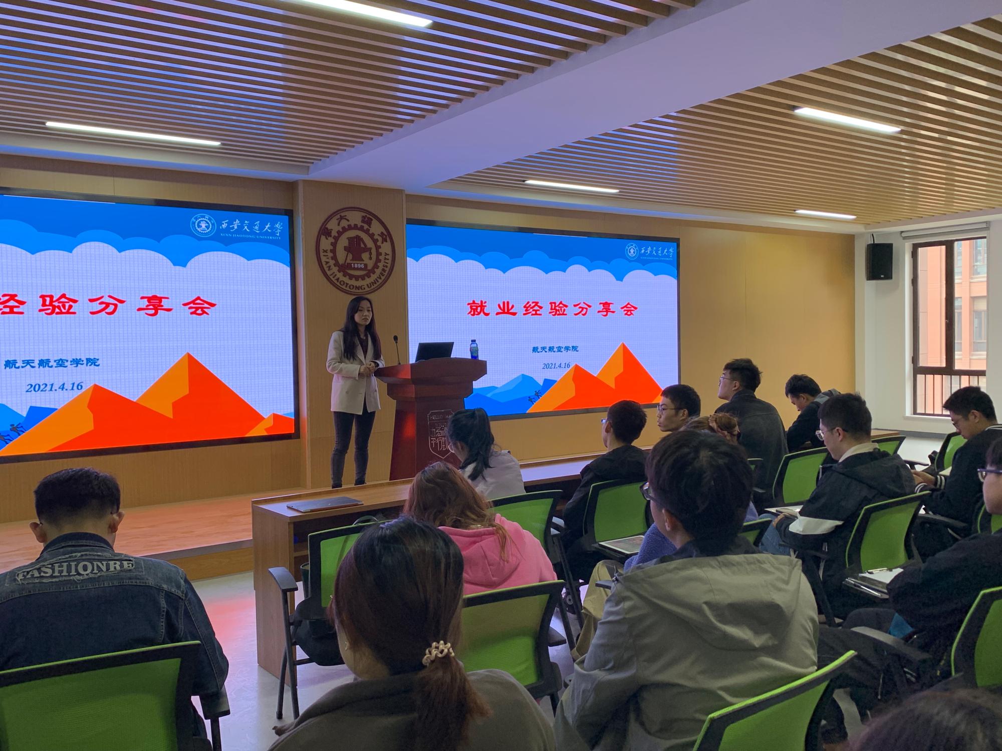 就业经验分享会在创新港力行楼4197举行。活动邀请了贾宁、郑星、邓鹏、王永泉以及马晓文五位在就业、求学、公务员申报等方面具有代表性的应届毕业生以及毕业生校友,分享他们在求职过程中的心得体会与宝贵经验,辅导员李昱静老师,航院2019、2020级硕士生以及其他学院部分学生参加,本次分享会由19级硕士第一党支部书记彭方澜主持。