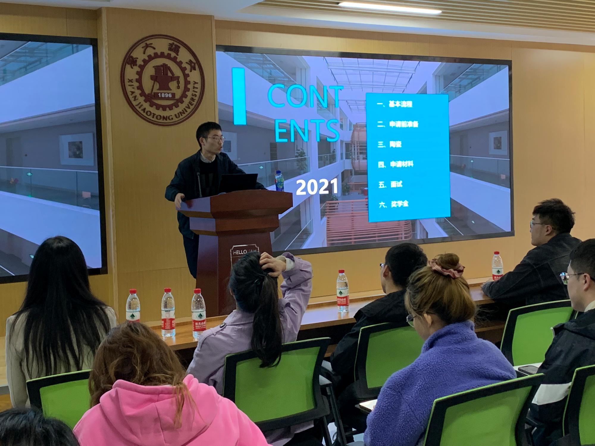 李昱静老师在开场致辞中寄语在场的同学们,提前做好人生规划,合理安排研究生学习、科研生活,顺利的完成学业并收获较好的工作岗位,对自己的学习生涯负责,对社会负责。