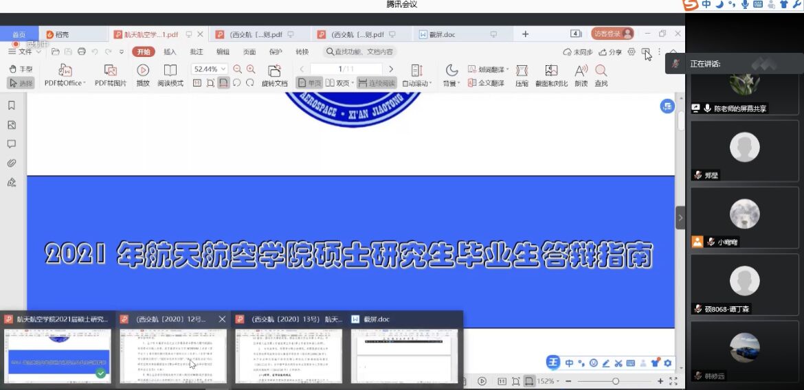 召开了2021届研究生毕业生学位申请流程在线咨询会。学院主管研究生副院长李群、学位分委员会主席李跃明、2021届全体毕业生以及部分其他年级硕士、博士研究生参加了会议。会议由学院研究生教学管理秘书陈妮主持。